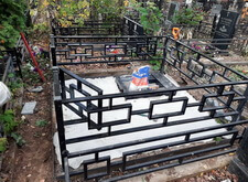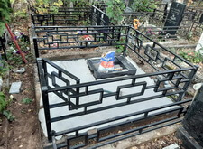 В ходе работы над данным заказом нам предстояло полностью благоустроить место захоронения: установить ограждение, изготовить памятник, а также покрыть землю на участке гранитной брусчаткой. Выехав на кладбище для точной оценки проекта, мы застали захоронение в следующем виде: на могиле был установлен памятник, бетонный цветник и бетонное же основание, а территория участка густо заросла травой.