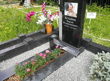 Затем приносим надгробье, предварительно укрепив на нём фотокерамику с изображением усопшего, устанавливаем его. Территорию участка засыпаем каменной крошкой, в цветник сажаем растения, в одном из углов места захоронения организовываем клумбу.